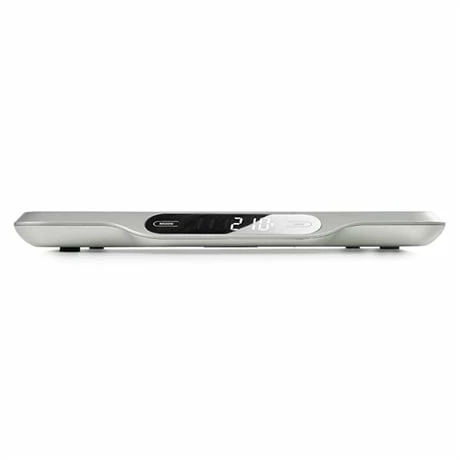 Cette balance de cuisine électronique d’une capacité maximum de 15 kg va vous permettre d’obtenir des résultats de pesés très précis ! Compacte et extra-plate, elle vous confère un gain d’espace et de rangement puisque celle-ci ne prendra pas plus de place qu’un livre une fois rangée verticalement. Robuste, la plateforme de pesage est fabriquée en acier inoxydable de la plus grande qualité. Moderne, elle dispose de 4 capteurs de grande précision d’une exactitude maximale au gramme près, d’une fonction d’arrêt automatique (60 secs) pour économiser l’énergie et enfin d’une fonction tare pour peser directement dans vos bols de préparation. Affichage sur écran LCD tactile très design qui affiche le poids total de l’aliment.