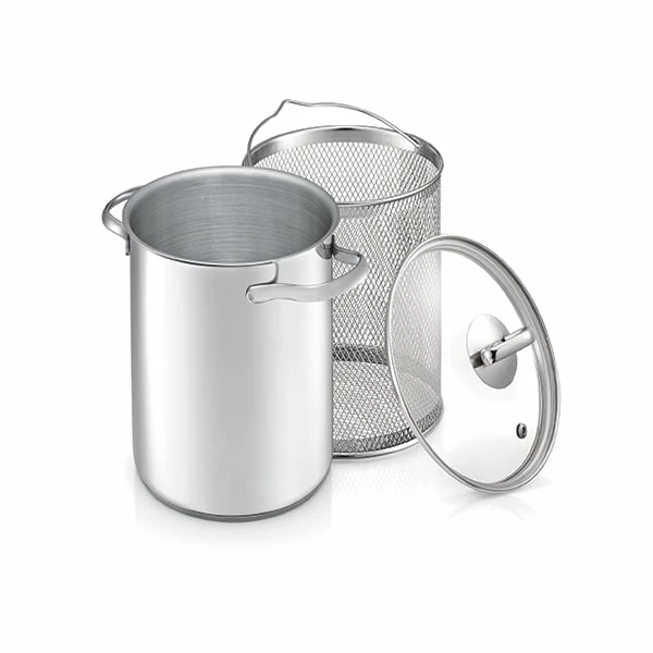 Si les composants principaux du cuiseur à asperges Chef sont à eux seuls un bon argument pour choisir ce cuiseur à asperges, Beka a pensé les finitions avec autant de soin. Deux poignées rivetées en fonte d’inox vous permettront de transporter en toute sécurité votre marmite grâce à ses poignées élargies. Le panier est adapté pour les asperges, mais également pour faire blanchir vos autres légumes, et la marmite pourra vous servir de traiteur pour y faire cuire de grandes quantités de pâtes ou de potage en une seule fois. Votre cuiseur est utilisable sur tous les feux y compris induction et four jusqu’à 200°, et une fois utilisé, vous pourrez passer tous les éléments au lave-vaisselle : simple, performant et élégant, ce cuiseur à asperges 16 cm sera un atout de poids dans votre cuisine.