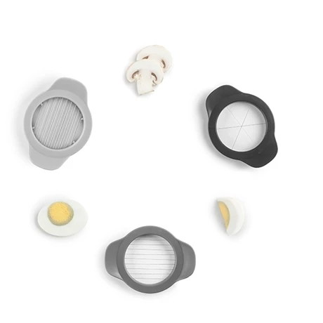 Pour utiliser le matériel, placez votre œuf dur ou votre champignon sur la base et abaissez le trancheur pour le faire descendre dans les encoches et couper net votre ingrédient.