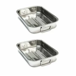 Ce lot comporte deux plats à four rectangulaire en inox de 30 x 22 cm. Ce set est idéal pour la cuisson de vos plats préférés au four. En Inox, il sera parfait pour cuire vos gratins, lasagnes ou vos poissons. Doté de anses tombantes à charnières, il est facilement maniable.