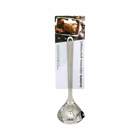 La louchette permettant de séparer le gras du maigre est une cuillère ingénieuse et très pratique. En effet, cet ustensile vous permet de récupérer les jus de cuisson de votre viande ou volaille et lorsque vous verserez dans votre assiette en l’inclinant du côté du bec, vous n’aurez que le meilleur du jus qui coulera. Le gras séparé, reste dans la louchette et vous permet ainsi de profiter d’un jus sain et savoureux !