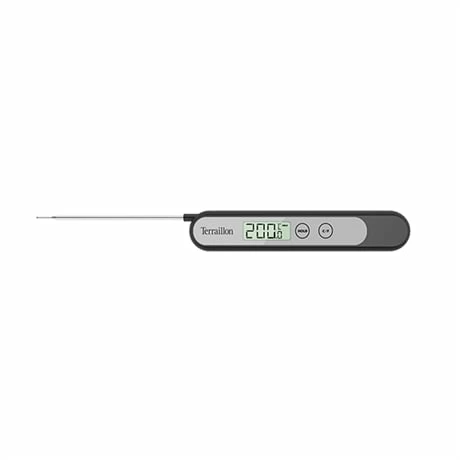 Sa sonde est pratique pour mesurer aussi bien du sucre ou du chocolat dans une casserole qu’une viande ou volaille à cœur. Il mesure la température de 50 à 200 °C avec une graduation tous les 0,1 °C. Pratique, la sonde du thermomètre est rétractable, il est ainsi très peu encombrant pour se glisser dans vos placards sans les encombrer.