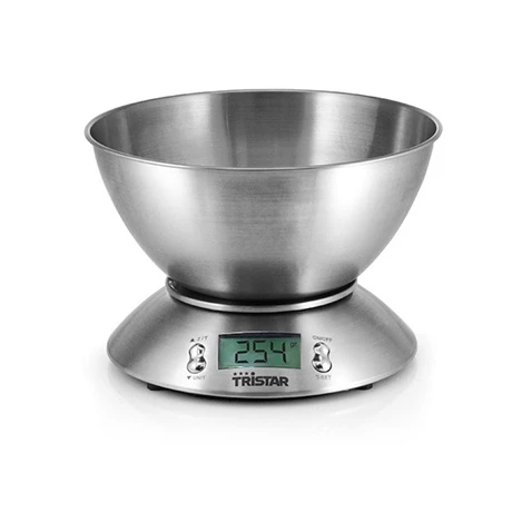 D’une capacité maximum de 5 kg, elle pèse les ingrédients et aliments au gramme près. Son bol à quant à lui, une capacité maximale de 2,5 L.