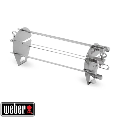Imaginez des recettes de brochettes originales, simplissimes et gourmandes pour un apéro entre amis réussi avec le set de 6 brochettes avec supports pour rôtissoire Crafted. Salées ou sucrées ; brochettes de poulet chorizo, de courgettes à la mozzarella, de bœuf aux abricots, d’espadon au curry, de raisins et de figues rôtis à la vanille, une multitude d’associations succulentes accessibles et facilement réalisables s’offrent à vous. Issues de la nouvelle gamme d’accessoires Weber® Crafted, le set comprend 6 brochettes et 2 supports sur pieds, avec encoches en acier inoxydable (la grille de support et la rôtissoire Weber® Crafted ne sont pas incluses dans ce set). Les supports sur pieds assurent une préparation facile et un service stable sans risque de chute des aliments tandis que les encoches intégrées permettent d’insérer les brochettes. Une fois l’ensemble correctement installé, il ne reste plus qu’à glisser le tout sur la broche de la rôtissoire. L’inox évite un transfert de goût sur les aliments et se montre très simple à nettoyer autorisant le passage au lave-vaisselle. D’une grande longueur (40,6 cm), les brochettes garantissent une portion adaptée à l’appétit des plus gourmands.